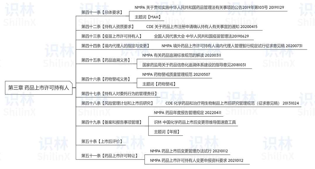 识林基于法规指南数据库,通过关键词检索,以思维导图形式提供一套索引,帮助读者梳理回顾每一条款对应的现行法规指南(仅列出相关性最高且最具代表性的文件),从而更加深入理解“实施条例”中每个条款,毕竟见解总是他人的,而学习与思考之后的认知才是自己的。