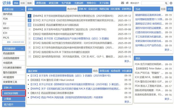 2023年9月,识林推出“中国化学仿制药注册”,“中国化学新药注册”,“原料QA”,“无菌QA”4个常用的岗位知识地图,岗位知识地图模块上线试运行。