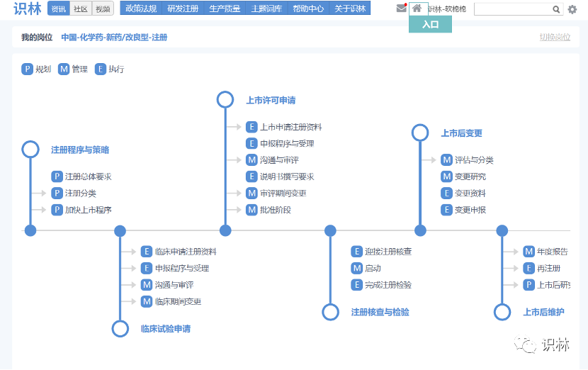 在试运行阶段,识林推出“国内化药仿制药注册”,“国内化药新药注册”,“原料QA”,“无菌QA”4个典型岗位知识地图模板,接下来将基于企业需要,不断开发新岗位,涵盖药品全生命周期的各项工作。