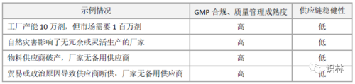 刺槐:31份反馈意见中,有一份来自美国科罗拉多州的药品供应链稳健性评估机构(RISCS),给出了两个鲜明对照的简要示例,让人一眼看出:产品质量好,供应链不一定就稳健。示例1请见下表。