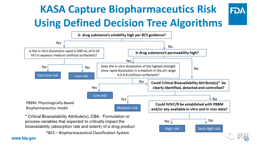 图7的关键词,在于“算法”(Algorithm)一词。这意味着KASA 相对于传统审评方式的质的飞跃。KASA也绝不仅仅是一个“审评认知记录表”,而是一步步趋近于FDA余煊强博士所言的“智能评价”。一旦有了算法,即使一开始只是相对比较简单的决策树算法(其中的决策还得依赖于人),但业界完全可以合理预期,算法必将优化发展,人为因素逐步减少,更为严谨和准确的IT智能因素不断增加,带来更加客观的审评决策。