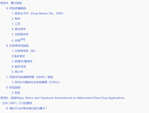 AAM 科学和法规事务执行副总裁 David Gaugh 写道,“附录 A 中的许多示例表明,原始申报中缺少信息将导致主要 CRL。然而,作为 GDUFA III 承诺的结果,FDA 需要在指南中指出,原始 ANDA 中缺乏信息可以通过其它机制(例如,IR、次要增补、即时行动、学科审评函(DRL))来解决。”