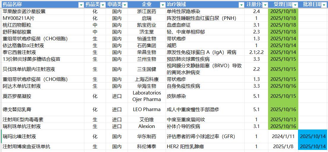 10.13-10.19,NMPA发布2个新药批准,CDE受理15个新药上市申请