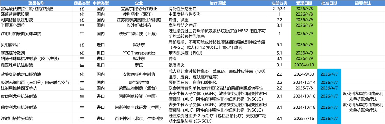 4.6-4.12,NMPA发布6个新药批准,CDE受理9个新药上市申请