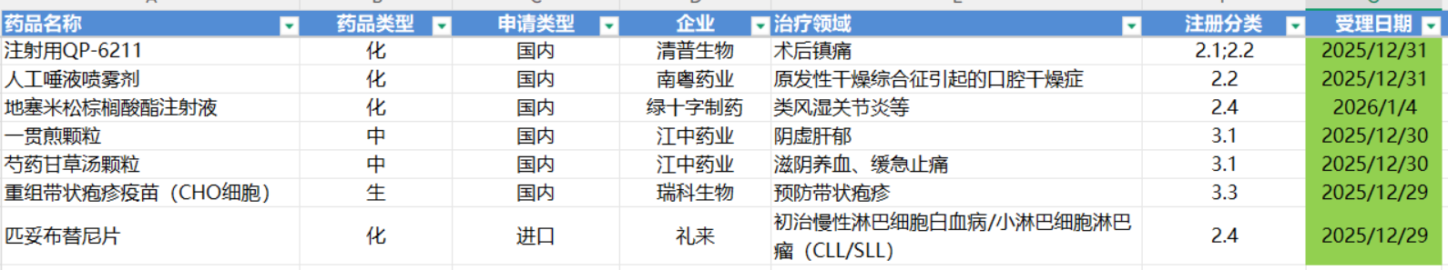 12.29-1.4,NMPA未发布新药批准,CDE受理7个新药上市申请