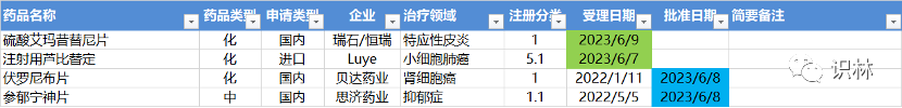 注:仅列出国产创新药和改良型新药,多受理号仅展示其中1个,供参考。企业用户可至识林“CDE 药品审评报告”按发布时间查阅最新的上市药品信息。