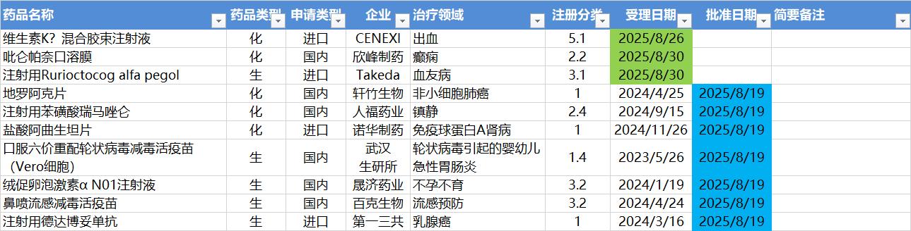 8.25-8.31,NMPA发布7个新药批准,CDE受理3个新药上市申请