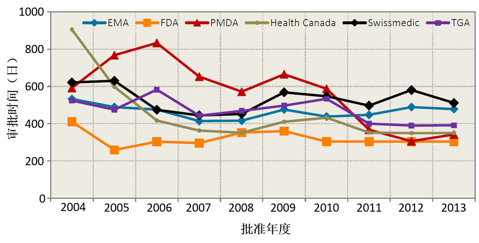 2003-2014年全球6家主要药品监管机构新药审评变化情况