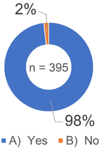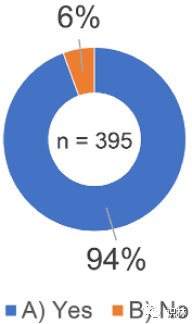 受访者被问及是否知道 ICH Q10 药品质量体系指南 将“知识管理”称为实现 ICH Q10“药品质量体系”的过程。如图1所示,在 395 份回复中,94%(373 份回复)的受访者回答“是”。