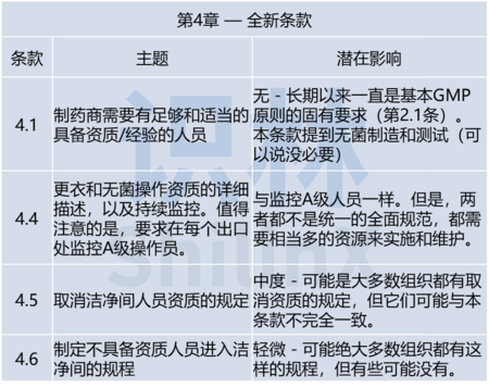 本附录的概念报告(concept paper)中指出,就资源或成本而言,预期不会对行业产生不利影响。因为大多数变革在很多制药场地已经存在,并且已经成为现行GMP的一部分。最有可能引发讨论和评论的关键变革领域包括: