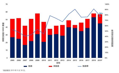 2019 财年,CDER 批准了 45 个新分子实体(NME),其中包括 23 个孤儿药。45 个获批新药中有 32 个接受优先审评。