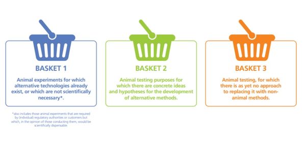 EFPIA的“三篮子”计划最早来自默克(Merck)的构想,是一个基于数据的实用框架,旨在将动物实验分为三个类别,以便药监部门和药企参考应用,从而更系统地推动替代。