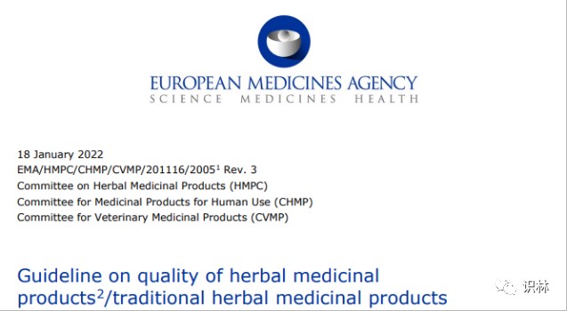 根据工作计划(参考识林资讯【欧盟植物药2022监管规划:草药专论,法规指南,审评程序】),5月12日欧洲药品管理局 EMA、植物药委员会 HMPC、人用药品委员会 CHMP 和兽用药品委员会 CVMP 发布最新修订版的《植物药/传统植物药质量指南》和《质量标准:植物原料、植物制品和植物药/传统植物药的检验规程和可接受标准指南》,主要对草药产品/传统草药产品的质量标准进行了规定,修订内容上人用草药产品部分两指南保持了一致,兽药部分与法规(EU)2019/6中关于兽药的内容保持一致。