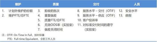 此次调研重点关注四个领域的关键绩效指标:维护、质量、交付和人员。以及一些推动系统(可以让绩效保持良好的属性)和结构性因素(例如,提供背景信息的产品类型等)。St. Gallen 使用 KPI 区分高绩效工厂和低绩效工厂。