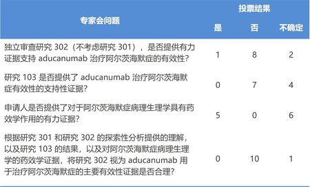 专家委员会审查了渤健提供的临床数据以及 FDA 当时的审评摘要,得出压倒性一致的结论,认为没有足够的证据表明该药对患者有显著获益。【阿尔茨海默药被 FDA 专家会彻底否决 2020/11/07】 另外,来自外部专家的最毫不留情的批评几乎都是针对 FDA,对 FDA 异乎寻常地大力支持渤健【公益组织要求调查 FDA 阿尔茨海默药审评程序,暂停相关人员工作 2021/06/06】 ,质疑其职业操守;对 FDA 设计的投票问题框架表示不满,认为 FDA 故意从措辞上限制了专家们发表意见。