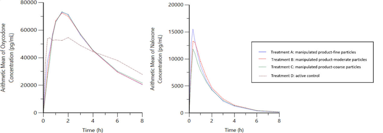 另一项合同HHSF223201610004I-HHSF22301002T旨在通过一项PK/PD鼻腔给药(IN)研究,调查处理过的盐酸羟考酮和盐酸纳洛酮缓释(ER)片粒径的影响(参见研究亮点)。
