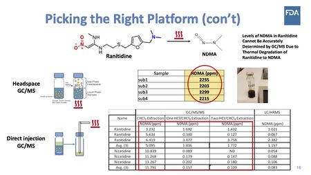 FDA 的结论是,实验室依靠质谱分析来检测样品,这种方法的特异性不足以区分 NDMA 信号与另一种杂质 N,N-二甲基甲酰胺(DMF)的信号。这些发现于 2020 年 7 月发表在 AAPS 期刊上。