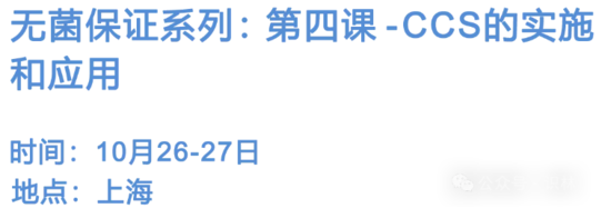 第三课:已于今年7月开课。介绍和探讨污染控制策略 (CCS) 在无菌生产领域的实施和应用:清洁工艺和验证;灭菌工艺和验证;及除菌过滤工艺和验证。